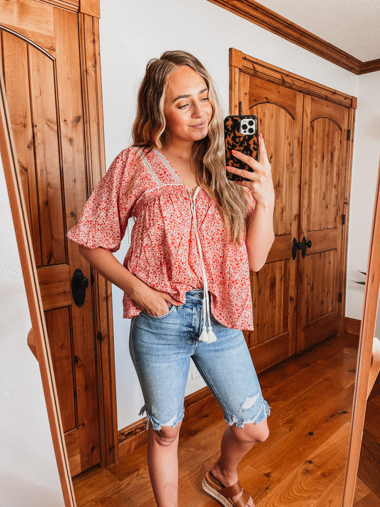 Cherry Red Floral Blouse